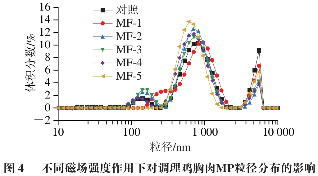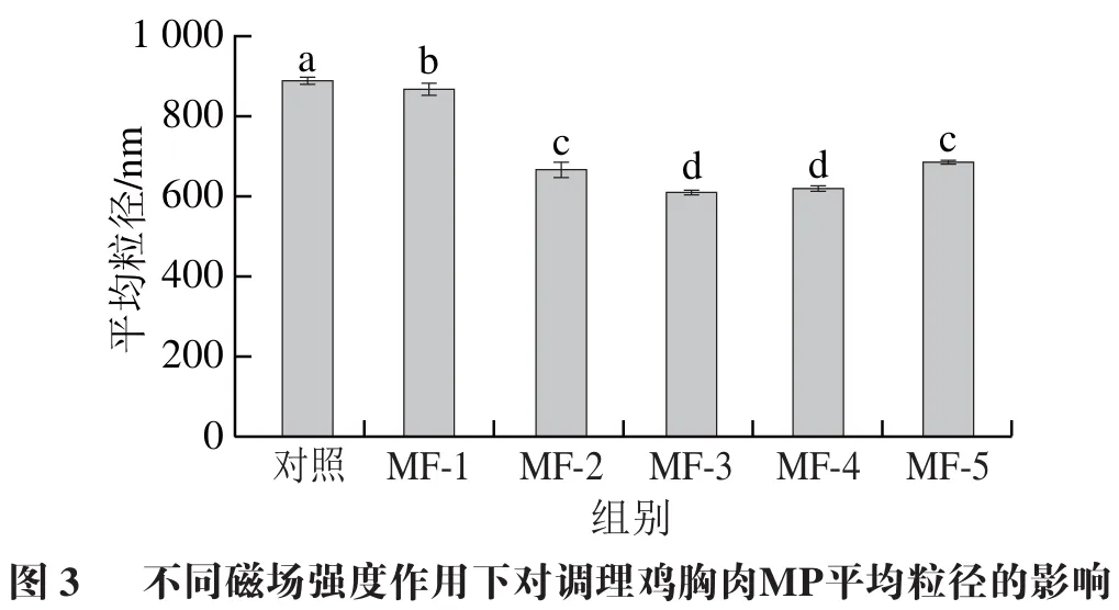 3 磁场辅助冻结对调理鸡胸肉MP平均粒径及其分布的影响