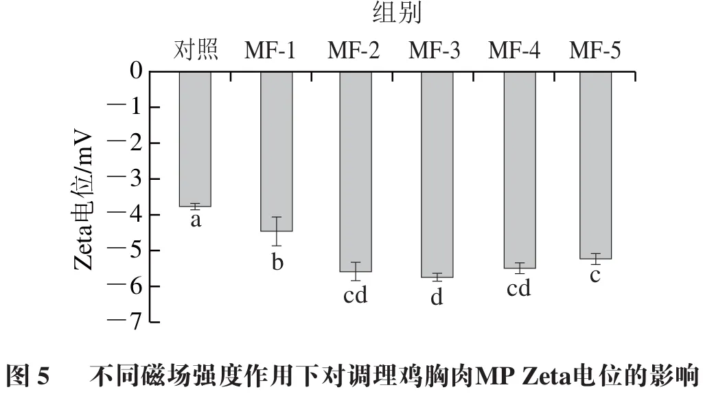 4 磁场辅助冻结对调理鸡胸肉MP Zeta电位的影响
