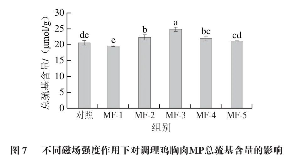 6 磁场辅助冻结对调理鸡胸肉MP总巯基含量的影响