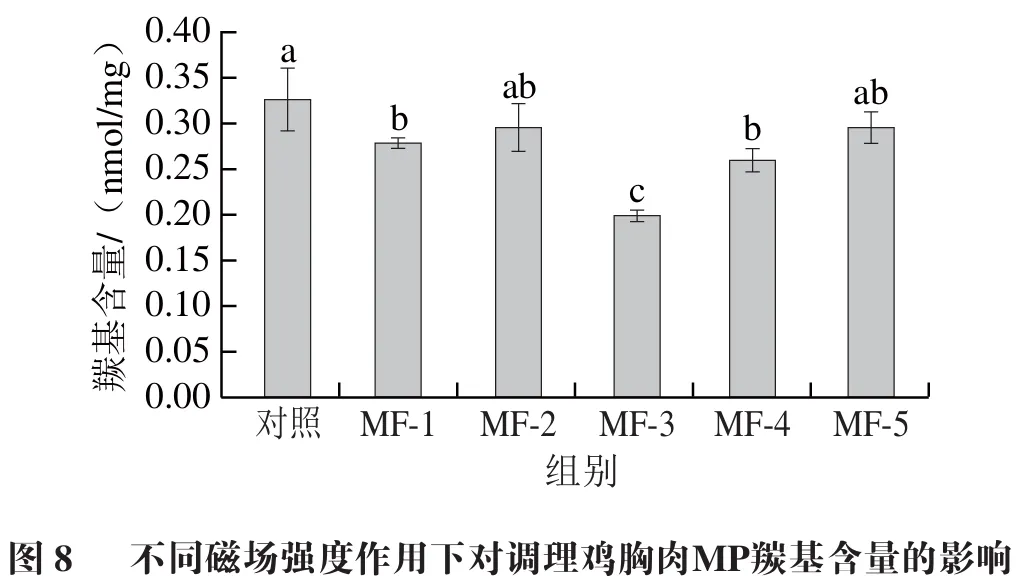 7 磁场辅助冻结对调理鸡胸肉MP羰基含量的影响