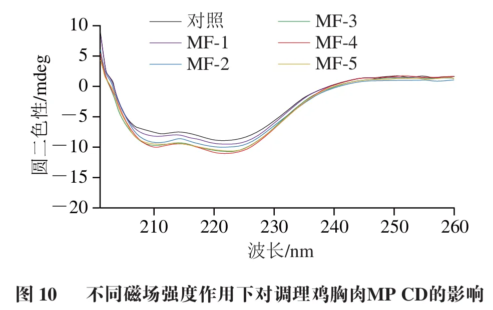 9 磁场辅助冻结对调理鸡胸肉MP二级结构的影响