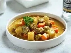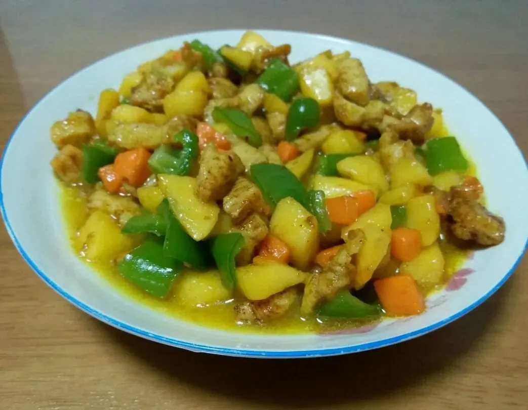 咖喱牛肉、番茄炒鸡蛋、什锦三丝、红豆银耳粥、玉米米饭、花花牛风味酸牛奶。