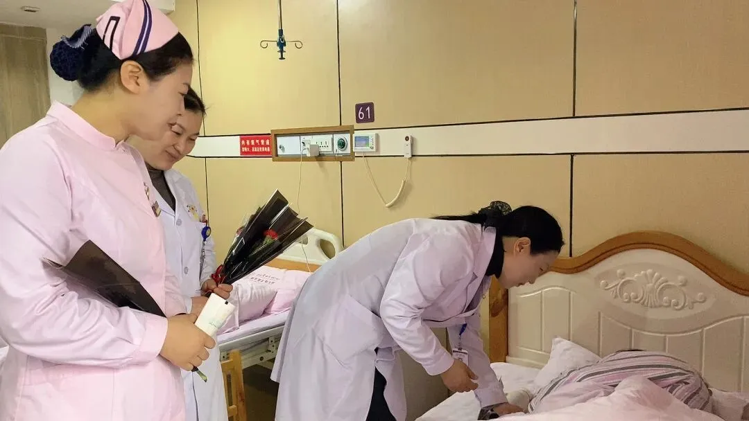 一大早,妇产科团队手捧鲜花和礼物,走进每一间病房,为在院的女士们送上节日问候。一位新妈妈感动地说:“没想到在医院也能过这么温馨的节日!”
