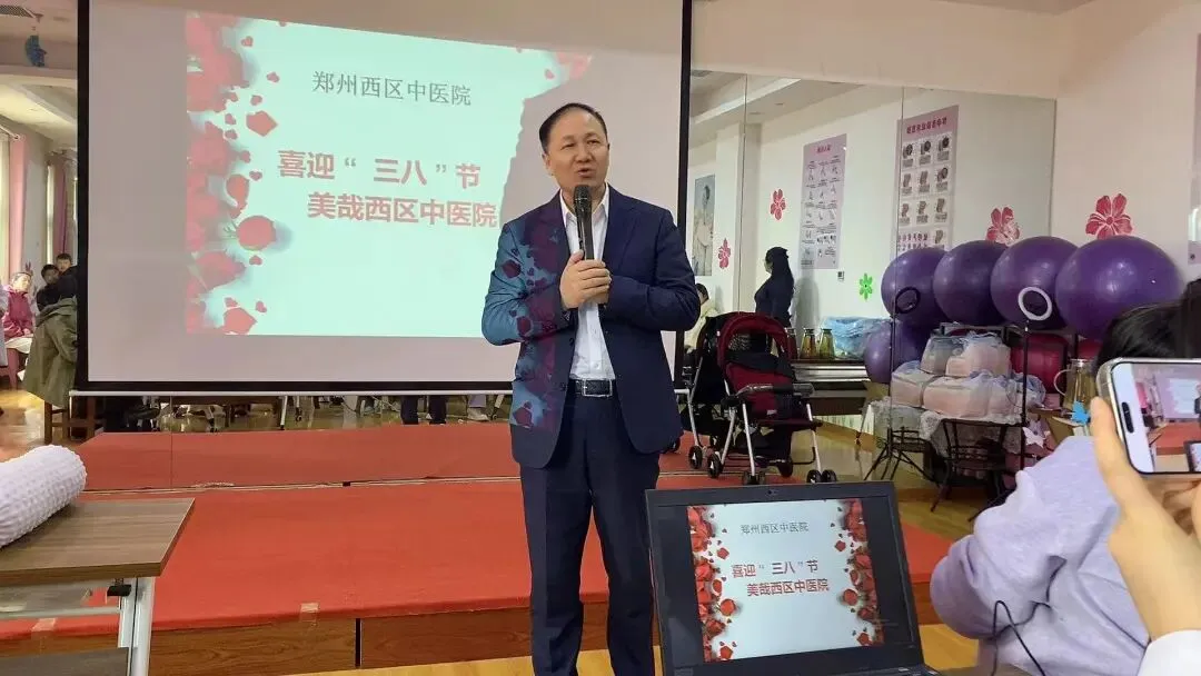 郑州西区中医院院长王永汉亲临现场,为所有女性送上节日祝福。他表示,医院将持续推动中西医结合,为女性健康提供更优质的医疗服务。