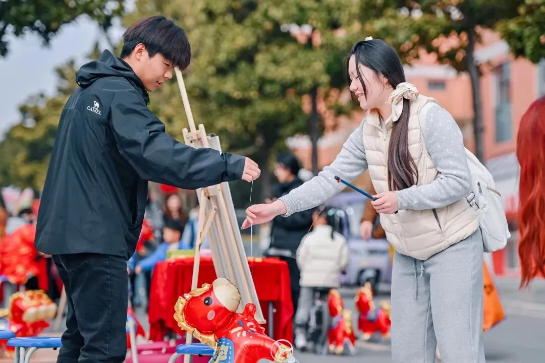 最热闹的当属抓马大作战,竹竿垂下系着红绸的“小马”玩偶,参与者手持特制钓竿,在笑声中体验“稳坐钓马台”的乐趣。