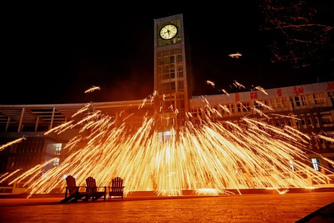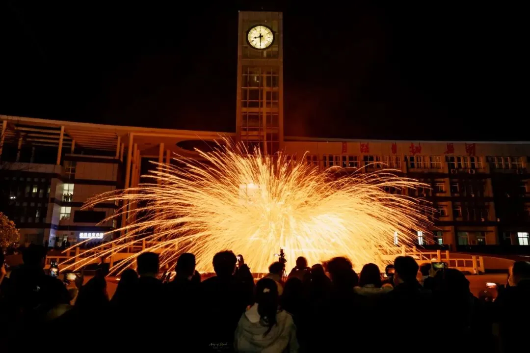 这项“打铁花”技艺,始于北宋,盛于明清,至今已有千余年历史,被列为国家级非物质文化遗产。这一融合了杂技与舞蹈的表演形式,让学子领略到“火树银花不夜天”的壮美,更体会到非遗传承人“台上一分钟,台下十年功”的匠心精神。