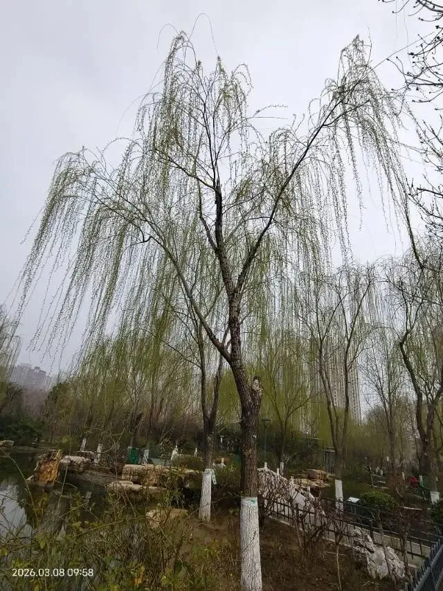 三月上旬的郑州,最动人的便是新绿与繁花。河畔公园的垂柳最先报春,褪去枯槁,抽出嫩黄新芽,柳叶渐渐舒展,嫩绿鲜亮如浸过春雨的翡翠。长条柳枝轻垂随风拂动,拂水漾涟漪,拂肩带温柔,远观如烟似雾,把春日婉约揉进绿城的水岸林间。