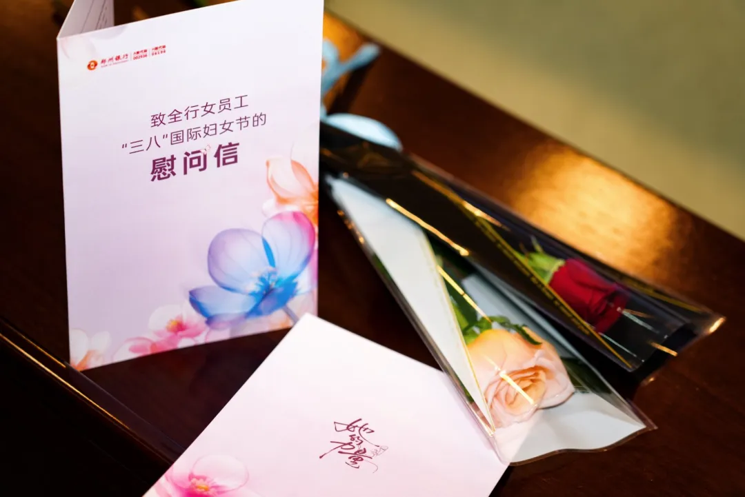 行党委发布慰问信向全行女员工致以节日问候与诚挚敬意。清晨,工作人员为每一位女员工送上鲜花与祝福,花香四溢,定格美好瞬间,让温暖与美好相伴同行。