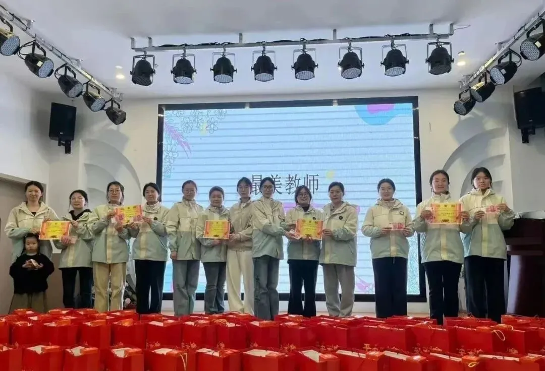 “最美教师”表彰环节将活动推向高潮。园领导为表现突出的教师颁发荣誉证书,鼓励大家以榜样为镜,在幼教岗位上继续发光发热。同时,活动特别鸣谢爱心单位的大力支持,为全体女教职工精心准备的节日礼品,这份暖心的关怀为节日增添了更多温馨与喜悦。