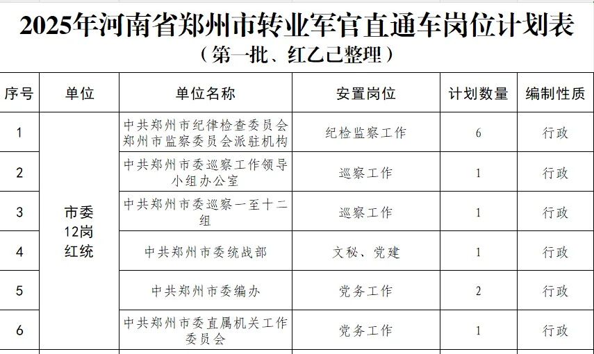 但是这位战友还是有疑虑,认为我不过是安慰之词。那么今天我就用2025年郑州市转业军官直通车安置第一批岗位情况,来消除这位战友和其他有类似情况的战友的疑虑。
