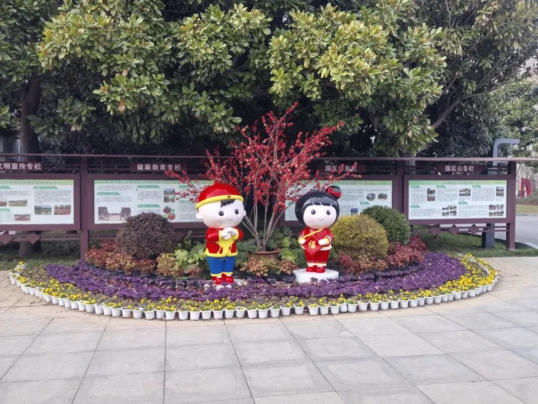 一路繁花,一路顺风,不一会就到了。门口还留言春节的装饰,好漂亮。来拍几张: