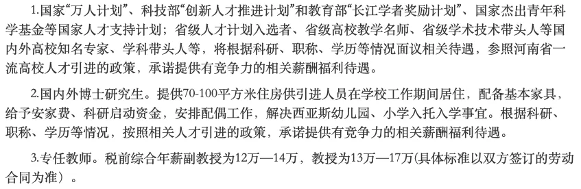 6.符合“智汇郑州”人才补贴政策条件的博士人才,可享受每月1500元生活补贴及10万元的购房补贴及其他政府政策,由学校协助提供办理所需相关材料(具体标准以政府相关部门最新政策为准)。