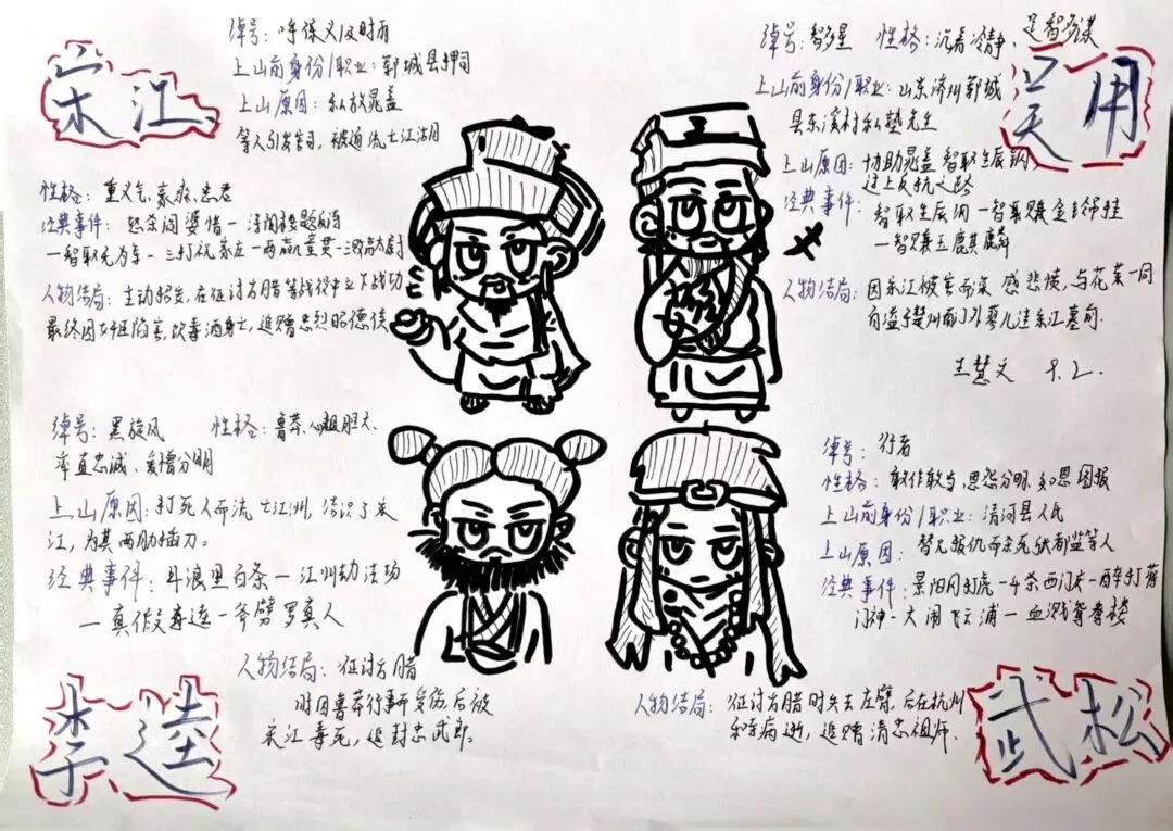 这份作业让经典名著走出书页,在读写绘的交融中,学生既品悟了水浒风骨,又练就了审美与表达,让假期学习焕发生机。