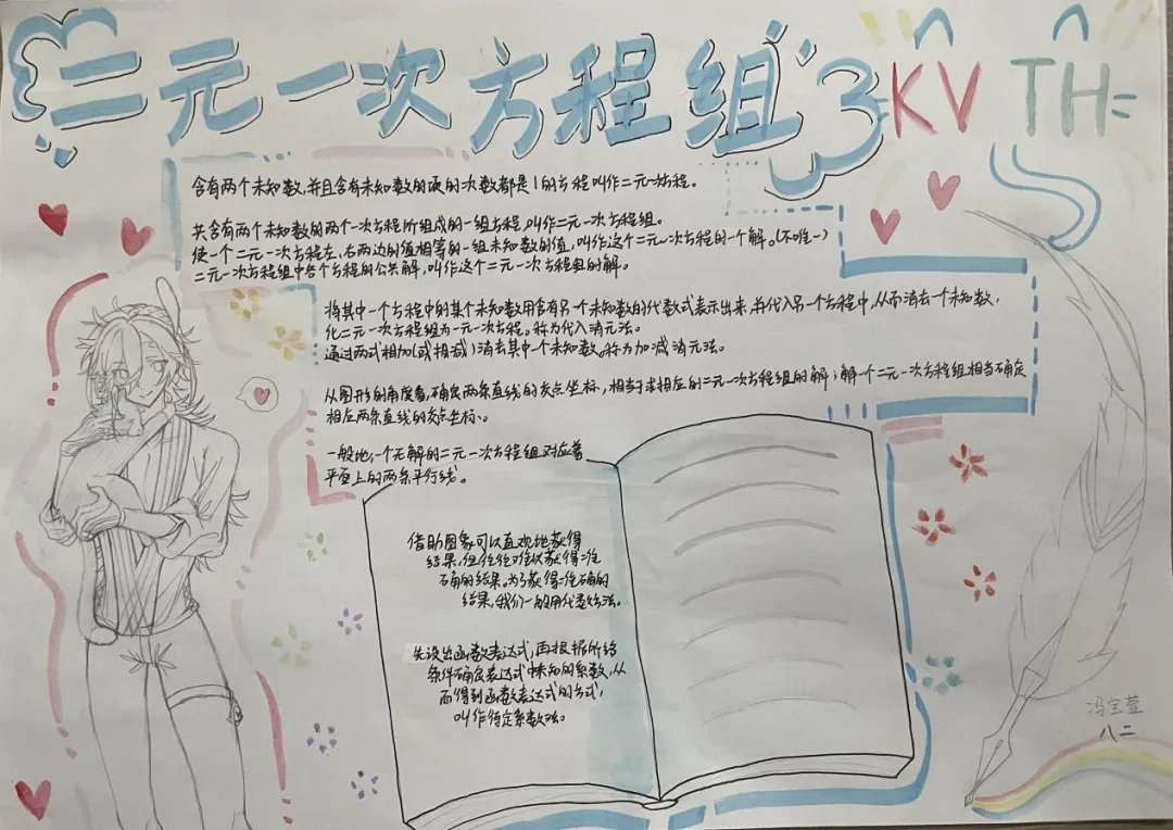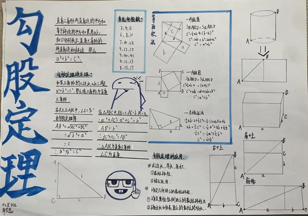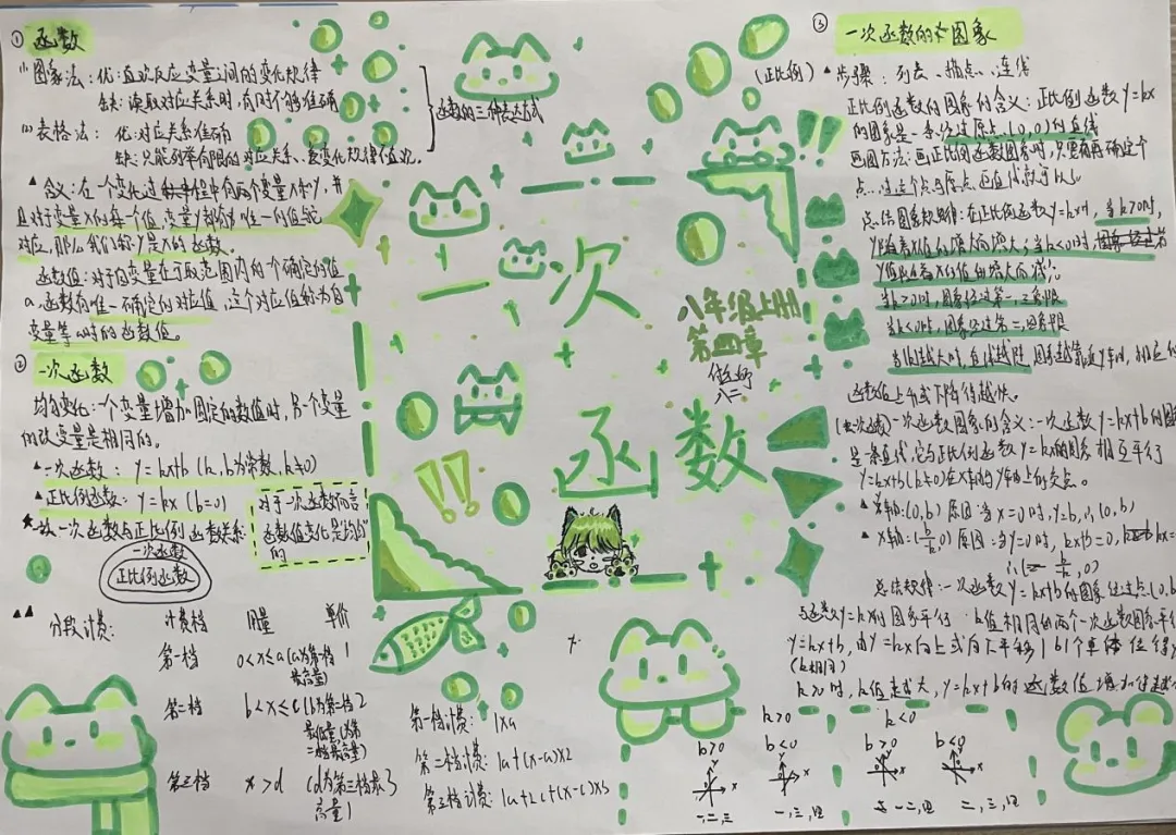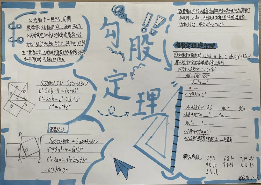 九年级数学特色作业以北师大版教材为依托,让学生自主选取喜爱单元绘制思维导图手抄报。学生积极参与,将零散知识点系统化、条理化,既巩固了数学知识,又锻炼了归纳梳理与审美创作能力。作业形式新颖有趣,有效激发学习主动性,实现知识梳理与素养提升的有机结合。