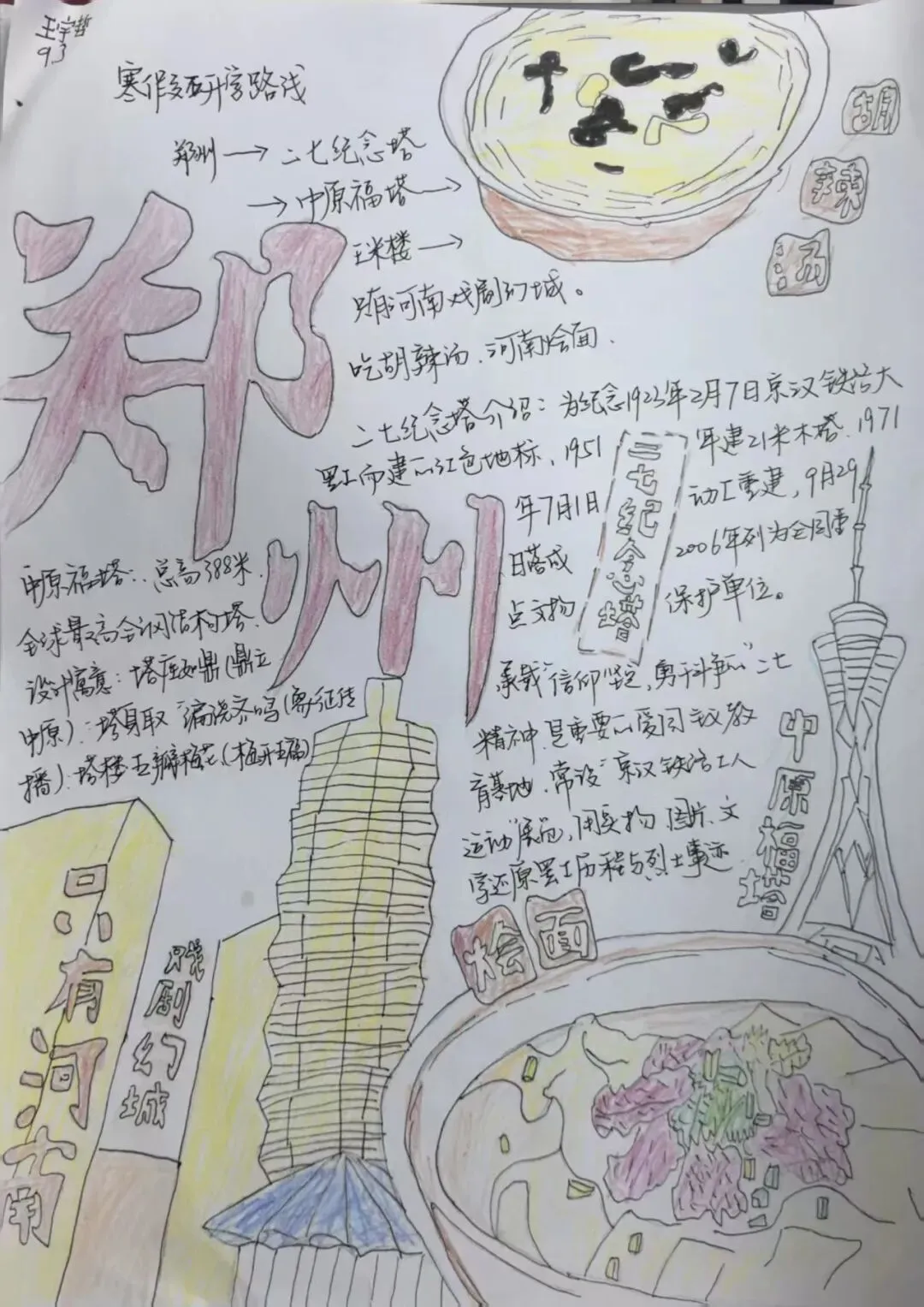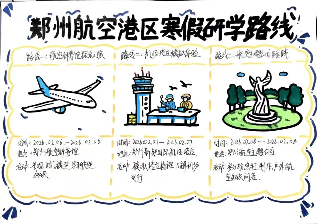 九年级道法寒假特色作业,学生自助设计郑州寒假研学路线:从二七纪念塔感悟二七精神,探访中原福塔览锦绣中原全景,驻足玉米楼(千玺广场)看古今交融的都市风貌,走进只有河南·戏剧幻城沉浸式品读中原文明。在行走课堂里,触摸历史温度,感受郑州的文化底蕴与现代活力。