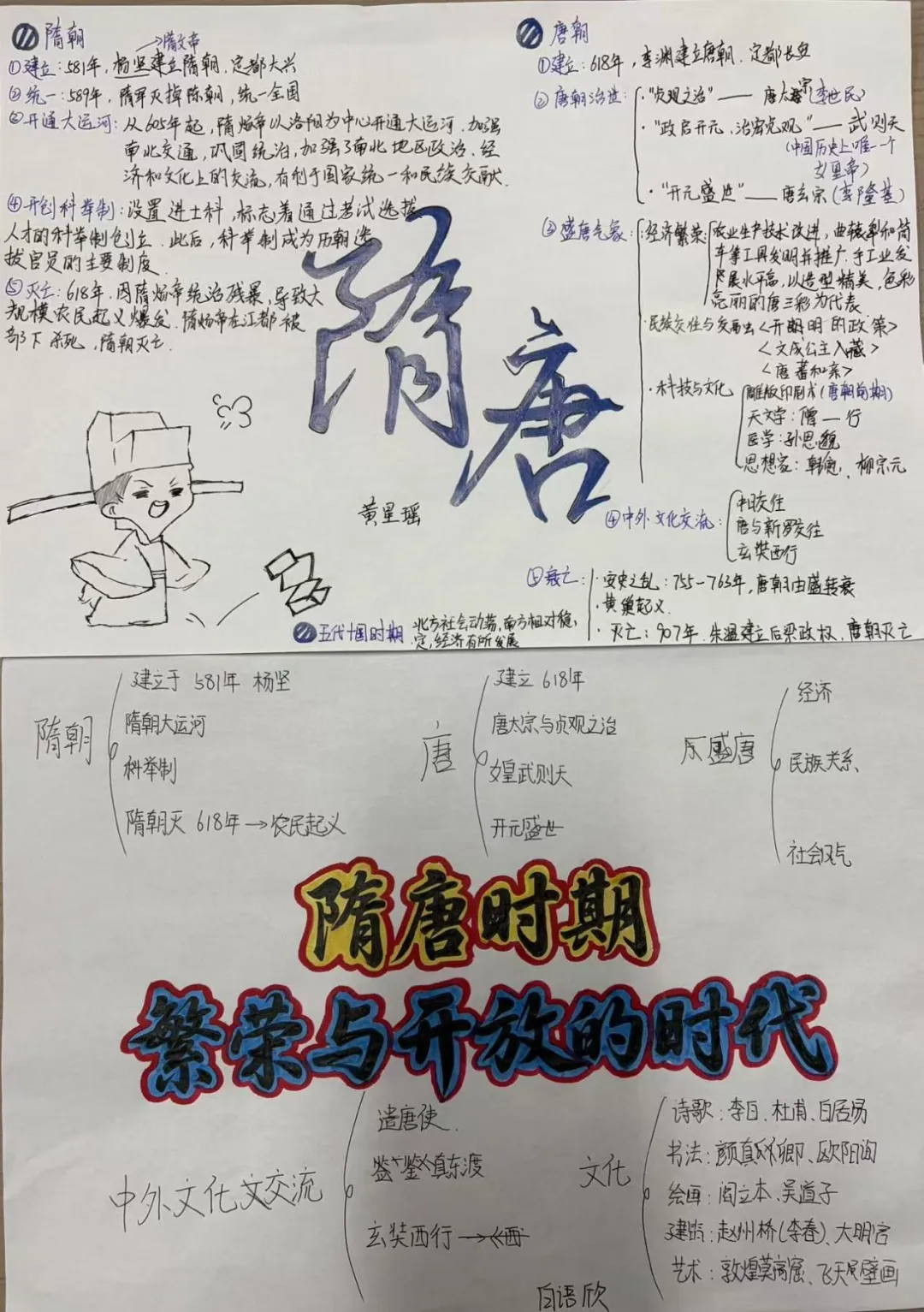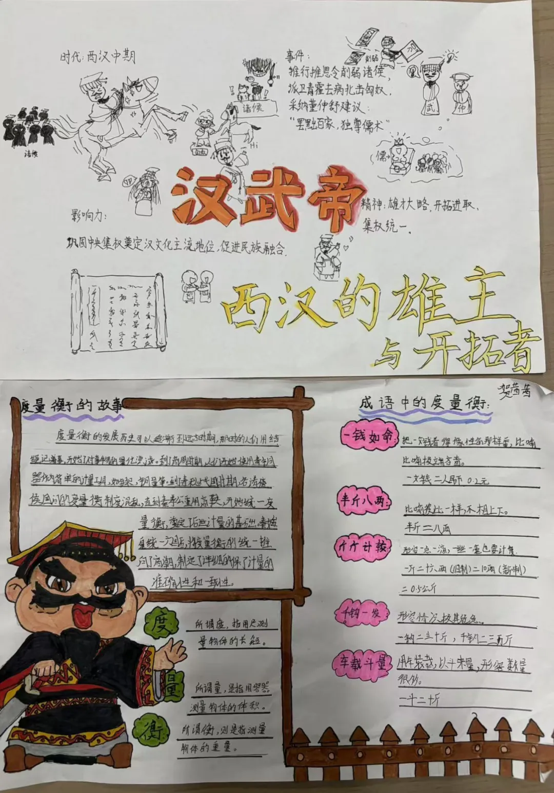 七年级同学们以中国古代史为灵感的创意作品。从三星堆文物的黏土复刻,到夏商周、秦汉、隋唐的知识思维导图,再到秦统一、汉武帝等主题手抄报,同学们用艺术的形式再现历史脉络,让厚重的历史变得生动可感,展现了对中华优秀传统文化的热爱与传承。