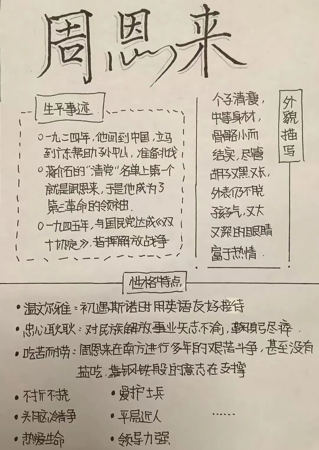 八年级历史寒假特色作业围绕历史核心素养设计,兼顾基础识记、图文理解与实践探究。通过了解周总理等伟人事迹,迁移历史变迁;借助改革开放前后的对比图片,培养历史观察力;开展人物(家中长辈)或历史实地寻访,引导学生挖掘本地历史,将课本知识与生活结合,提升史料探究与历史表达能力,落实家国情怀素养。