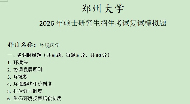 >【免费获取】郑州大学环境法学模拟真题含答案