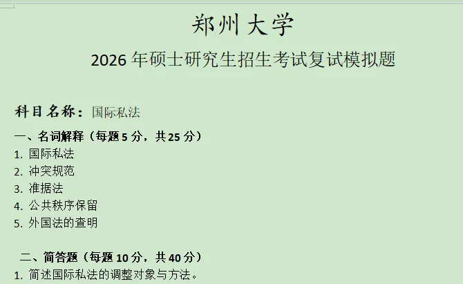 >【免费获取】郑州大学国际私法考研复试模拟真题含答案