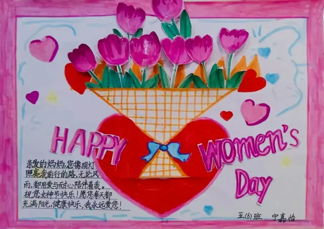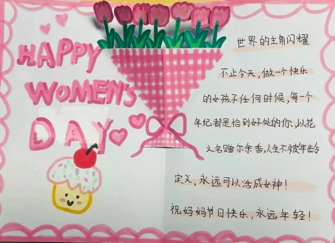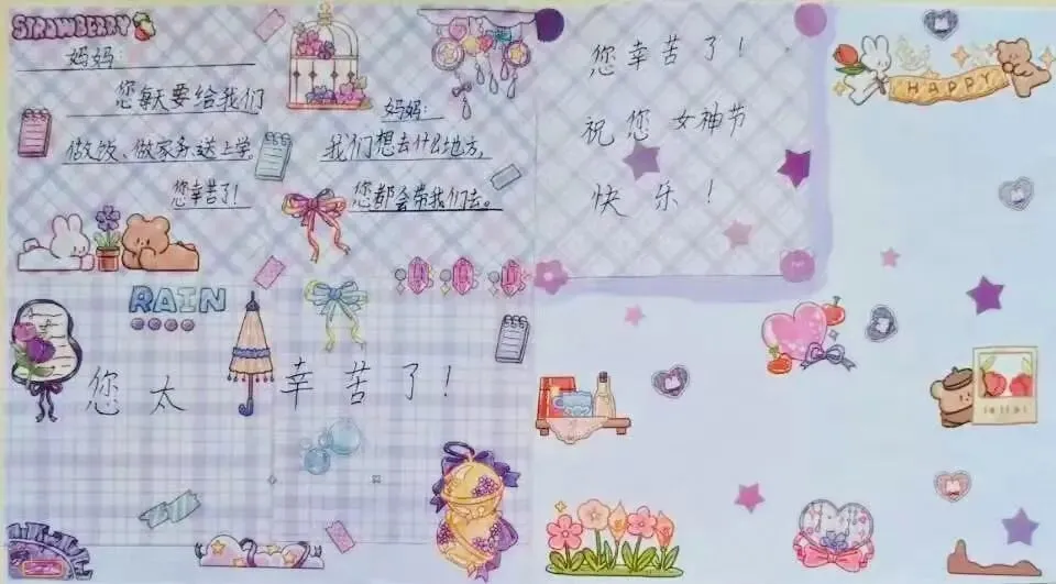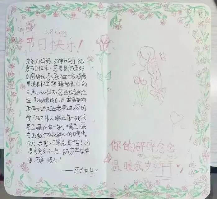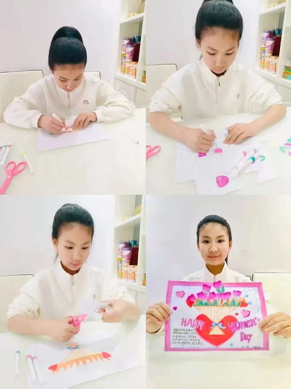 五六年级学子开展“说说我的心里话”贺卡制作活动,将羞于言说的感谢与爱意,一笔一划写在贺卡上,以笔墨传情,温暖每位“女神”的心房。