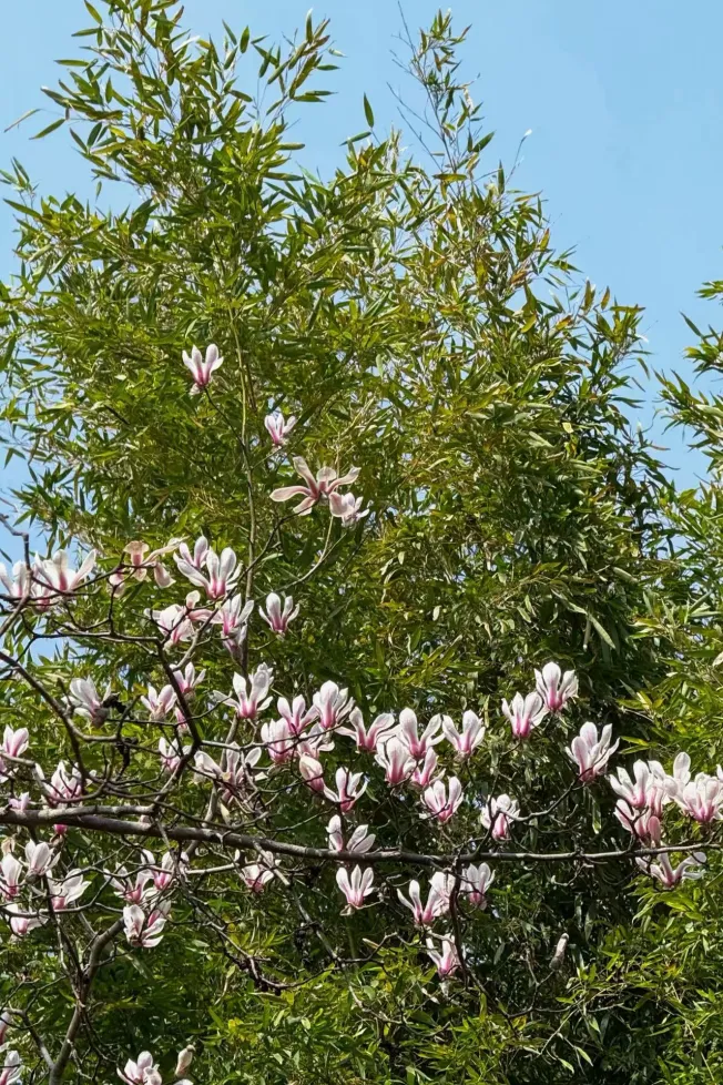 无叶衬花,一朵朵亭亭玉立,白的像小月光,紫的像温柔晚霞,粉的软fufu,站在树下随便凹造型,氛围感直接拉满,不用滤镜都自带磨皮效果,社恐也能轻松拍大片!