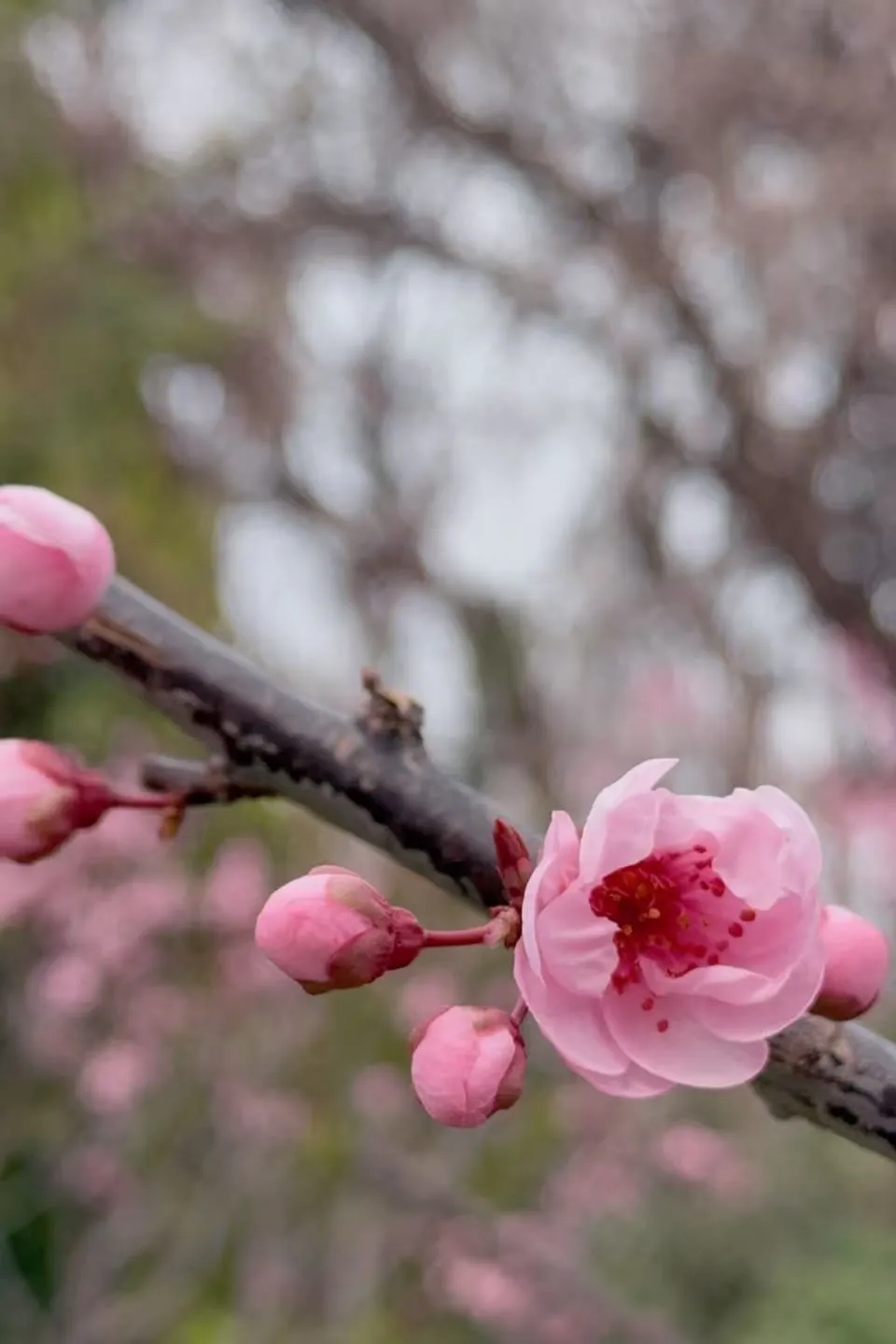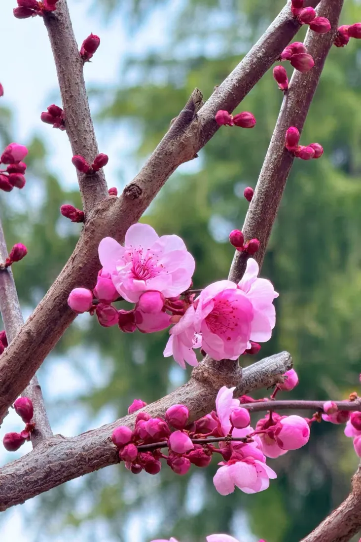 人民公园的美人梅开得正盛,粉粉嫩嫩的花瓣带着淡淡的红晕,枝条舒展, 氛围感直接拉满,甜妹拍照超出片,随手一拍都是温柔系大片,千万别错过!