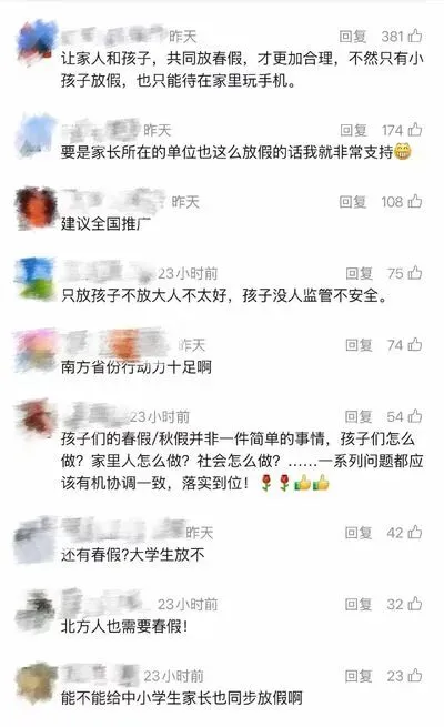 期待之下,双职工家庭的顾虑也尤为突出。市民石磊坦言,自己和妻子都是上班族,若春假落地,孩子的看护将成为最大难题,“老人都不在身边,希望学校能像其他地方一样,提供公益托管服务,解决我们双职工家庭的‘后顾之忧’,因为我们还担心,今年的学期比较短,放假会不会影响孩子的学习进度。”