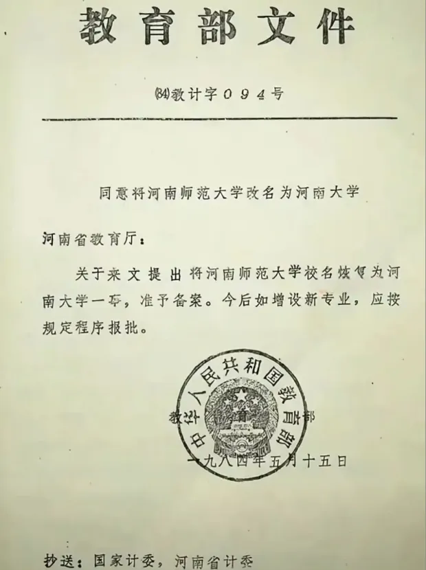 而河南大学,在院系拆分后,经历了多次更名和合并,直到1984年恢复河南大学校名。