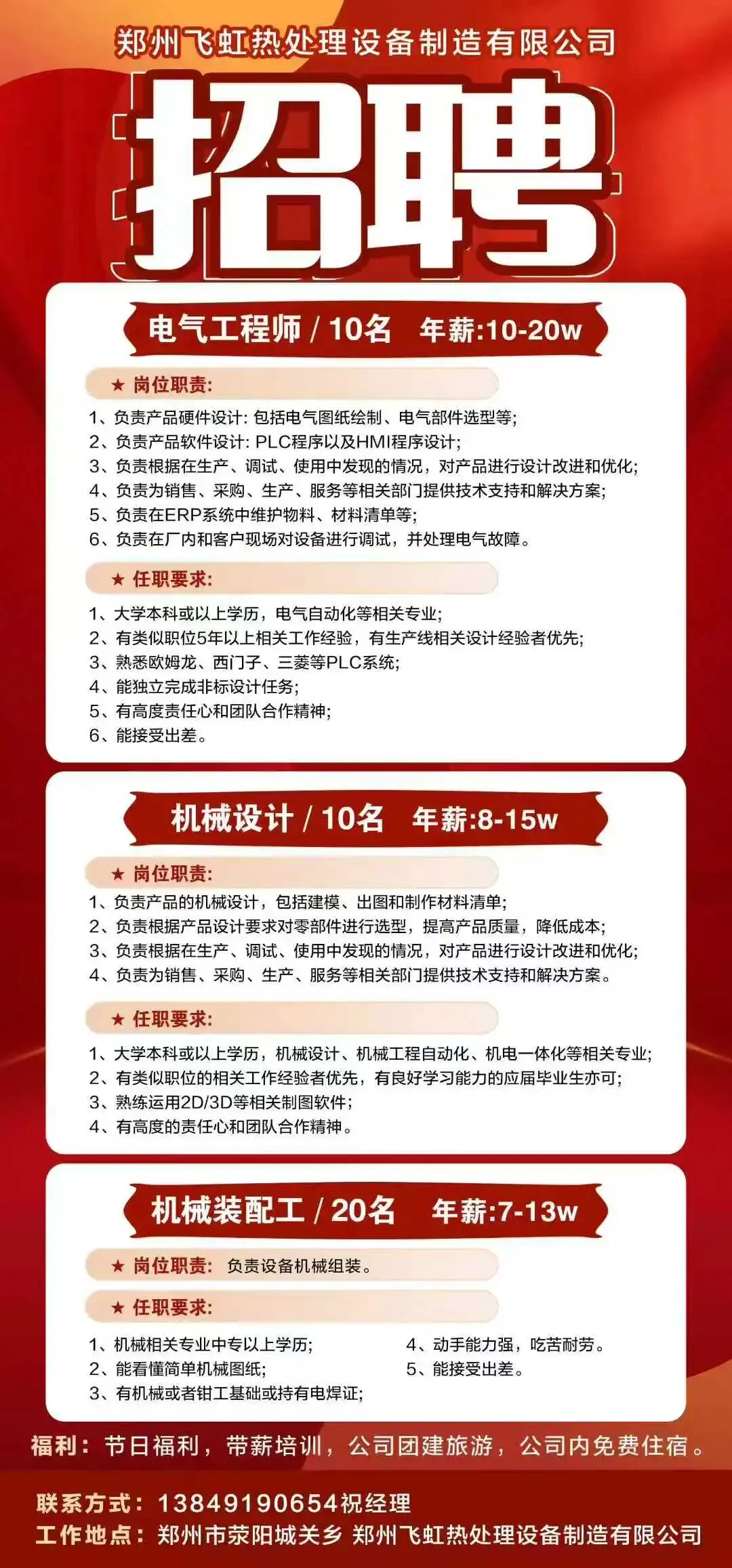 >招聘丨郑州飞虹热处理设备制造有限公司,年薪20万