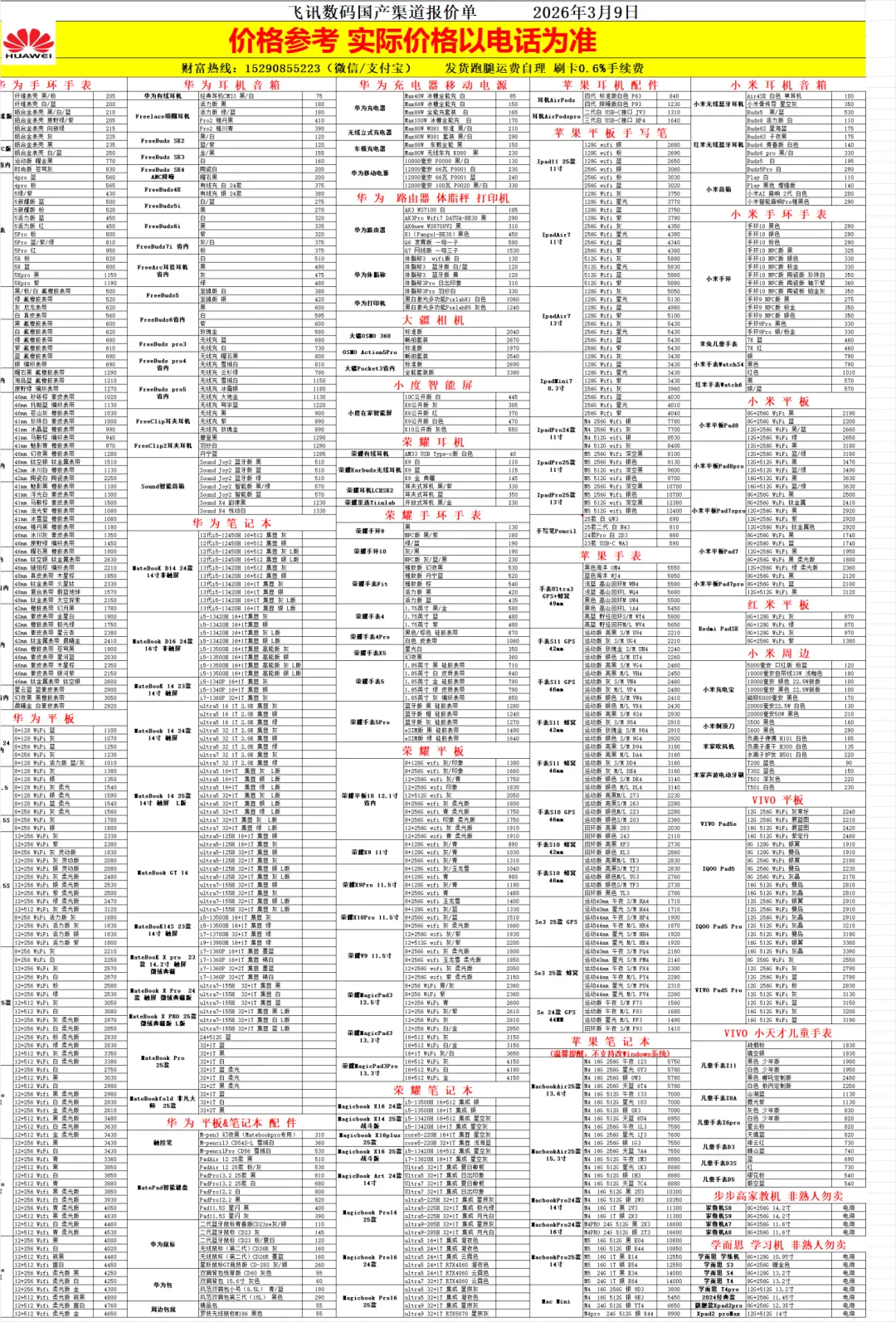 2026年3月9日渠道报价单 关注公众号查看每日报价