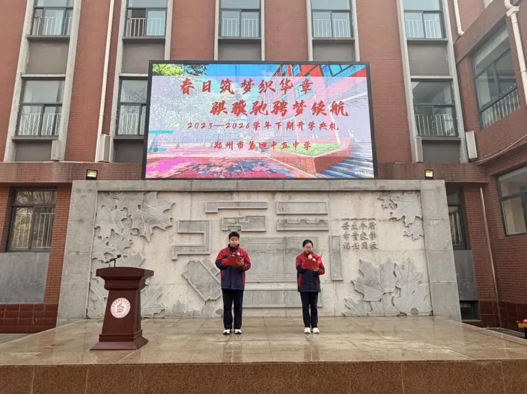 春风拂校园,骐骥踏新程。2026年3月5日下午,郑州市第四十五中学全体师生齐聚操场,以“春日筑梦织华章,骐骥驰骋梦续航”为主题,开启2025-2026学年下学期开学典礼。这场融科技之光、奥运之勇、文化之韵于一体的开学盛典,以鲜活的故事、温暖的力量、坚定的嘱托,为四十五中学子注入新学期奋进的底气。