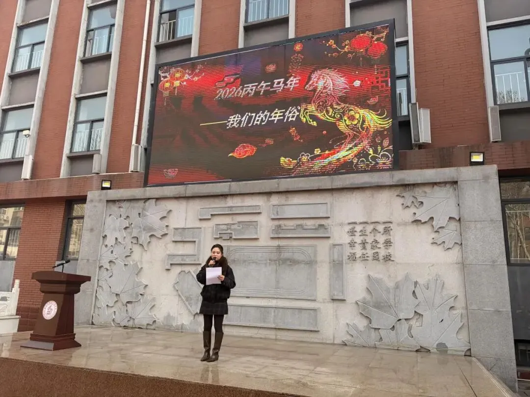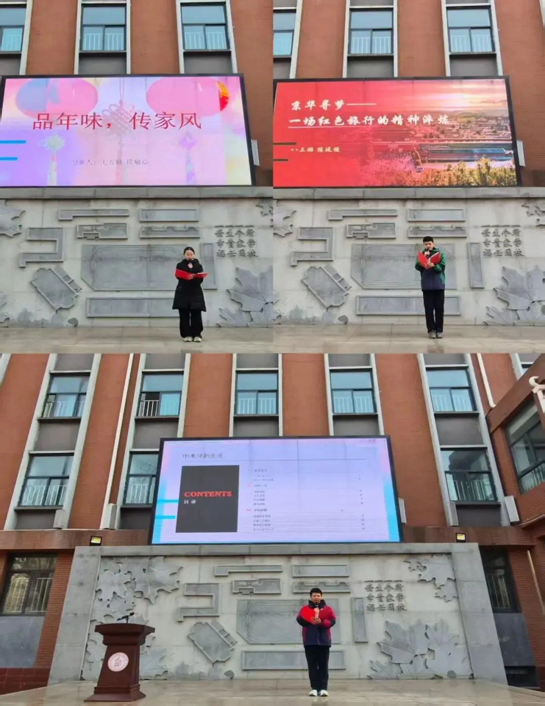 年味融情,文化润心。校团委书记张琳的年俗讲解,将贴春联、守岁、包饺子的传统韵味与安全教育巧妙融合,让传统文化在新时代绽放新光彩,也让学子在品味年味中读懂传承的意义。随后,七、八、九年级学生代表依次登台,分享寒假里的家风传承、实践感悟与备考初心,他们在年味里传承家风、在红色足迹中淬炼精神、也在书桌前坚定冲刺中考的决心,平凡的文字里藏着最真挚的成长,勾勒出四十五中学子丰富多彩的假期生活。