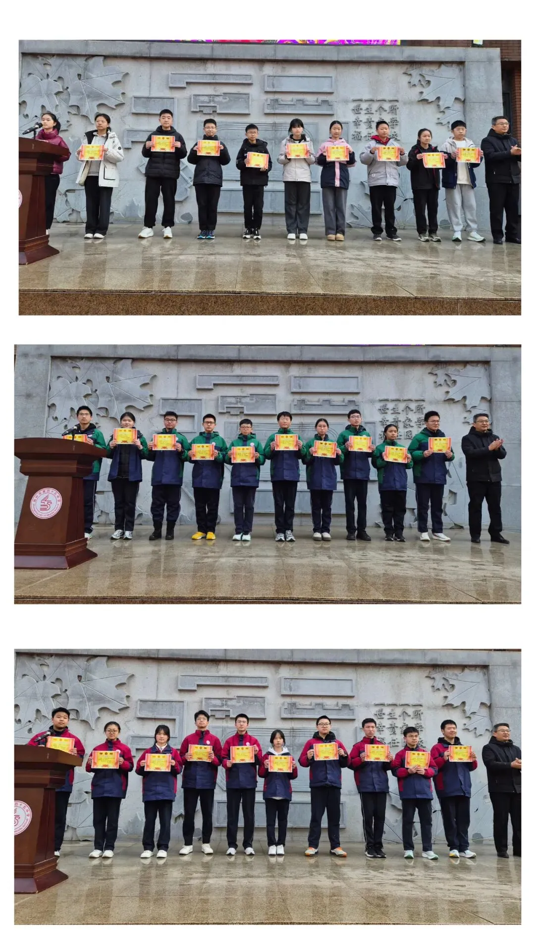 师者寄语,薪火相传。九年级年级长张丽霞老师的发言,以温情的话语传递师长的期许,既有对学子成长的欣慰,更有对新学期拼搏的鼓励,让在场学子感受到师者的温暖与力量。榜样引领,见贤思齐。典礼的颁奖环节迎来高潮,校长牛俊涛为勤学善思、追求卓越的学习标兵颁奖,党总支书记刘国杰为班风正、学风浓的文明班级颁奖,鲜红的奖状映着少年的笑脸,台下羡慕与向往的目光交织,成为校园里最动人的风景。而那些斩获“进步之星”的学子,虽未登台,却早已用汗水证明了坚持的意义,成为身边最鲜活的成长榜样。