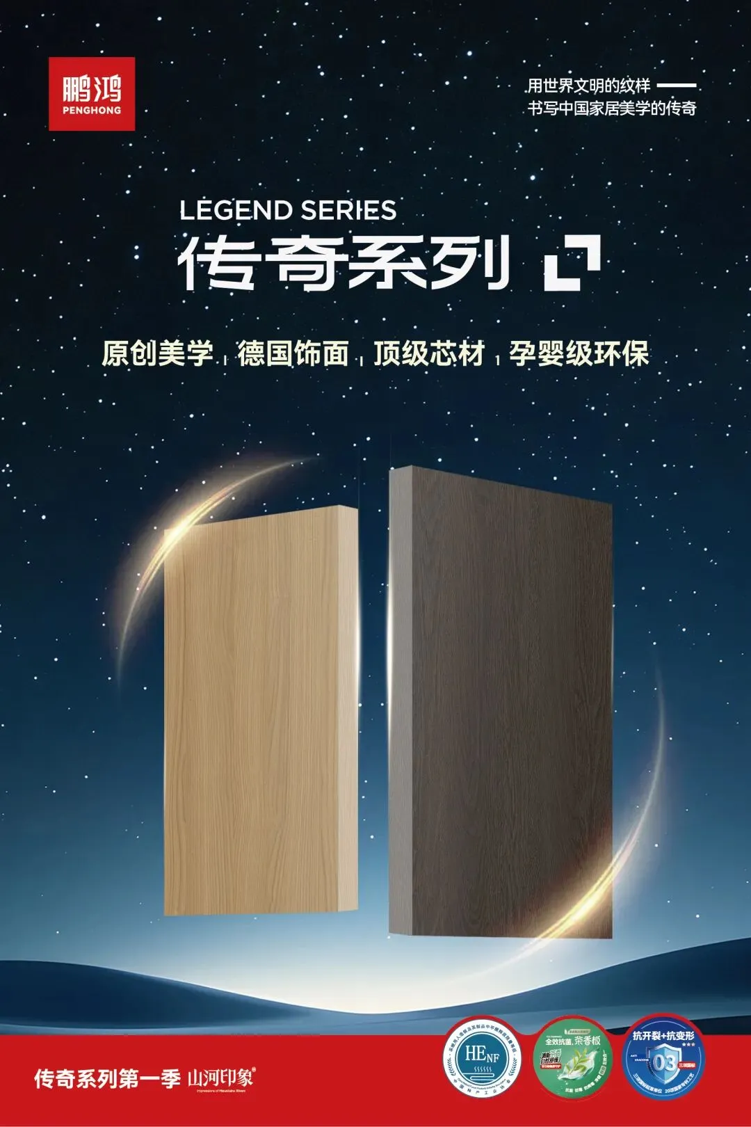 作为行业绿色板材领军品牌,鹏鸿每一次产品迭代都引领着市场的风向标。此次石家庄与郑州两地分别展出的传奇系列与茶香板,均是鹏鸿征战2026年的“王炸组合”。
