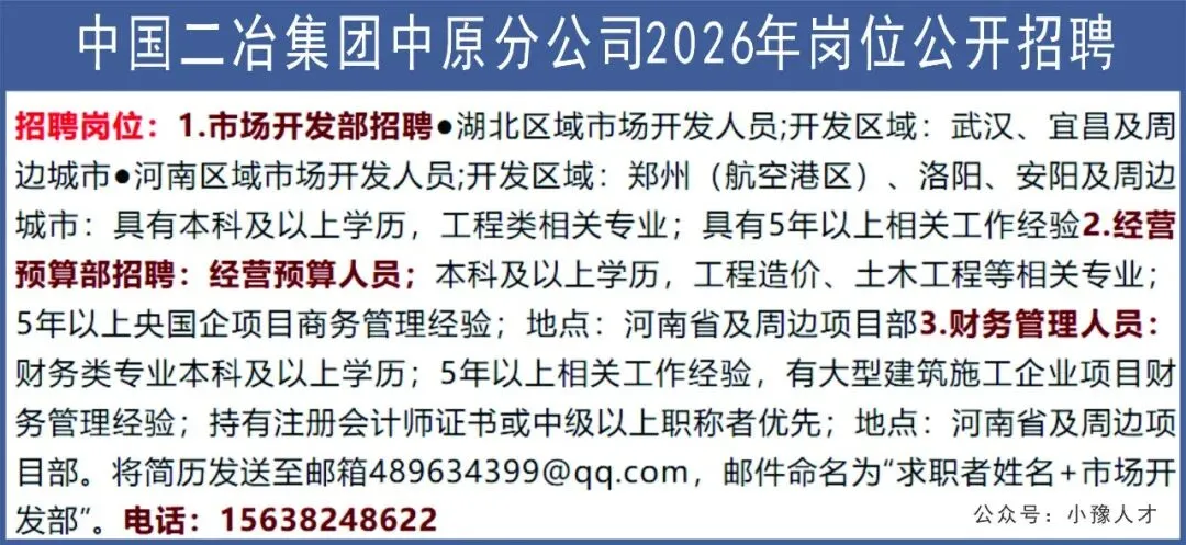 >中国二冶集团中原分公司(郑州)招聘公告