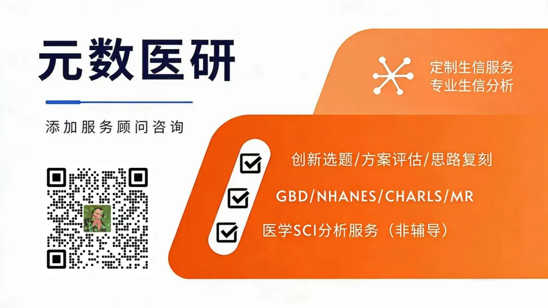 文章思路清晰,数据丰富,如果你也想要复刻这篇文章思路,元数医研可以帮你实现!快来扫描下方二维码,联系研研吧!