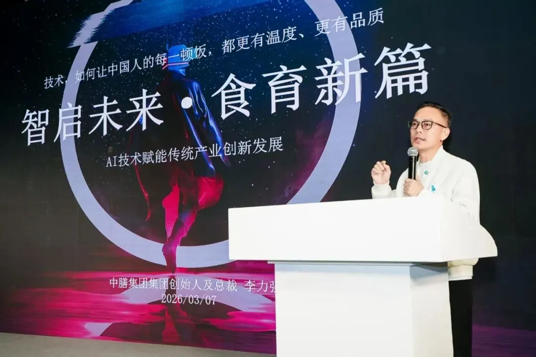 团餐龙头企业中膳集团总裁、中国饭店行业协会团餐专业委员会副理事长李力强先生,带来主题分享《AI技术赋能传统产业创新发展》。他深入剖析了人工智能在团餐供应链管理、菜品研发、服务运营等环节的应用场景,为行业数智化转型指明了方向。