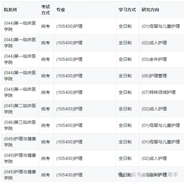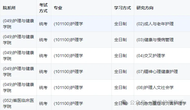 加试科目:《健康评估》、《病理生理学》(同等学力或跨专业报考考生均需加试)