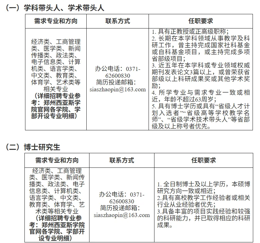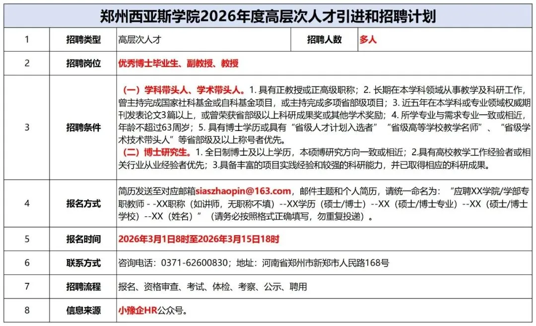 >郑州西亚斯学院2026年度高层次人才引进和招聘计划