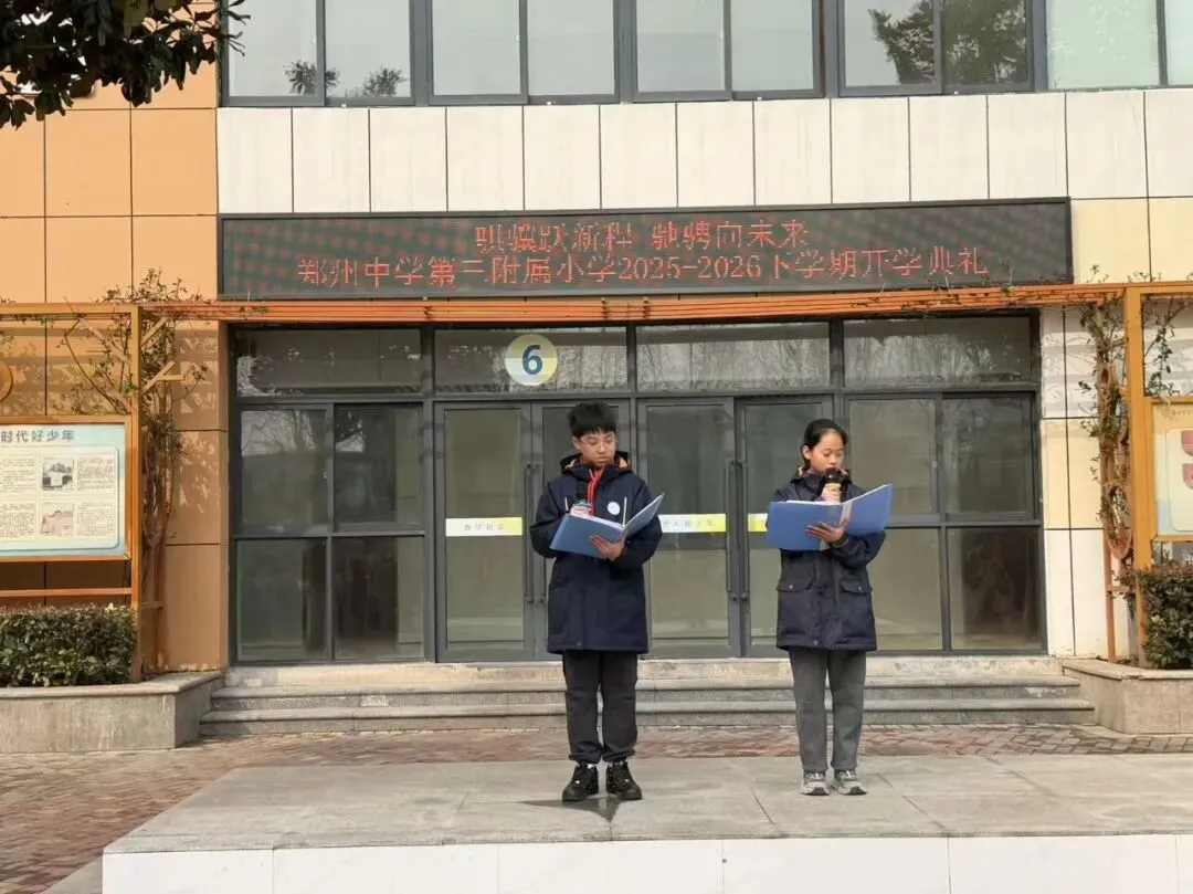 2026年3月9日,郑州中学第三附属小学全体师生齐聚校园,隆重举行2026年春季学期开学典礼。典礼伊始,主持人以饱满的热情向全体师生送上新春的问候,并带领大家回顾了今年春晚中令人印象深刻的智能机器人表演。科技的力量与传统文化的融合,为新学期注入了创新与活力的底色。