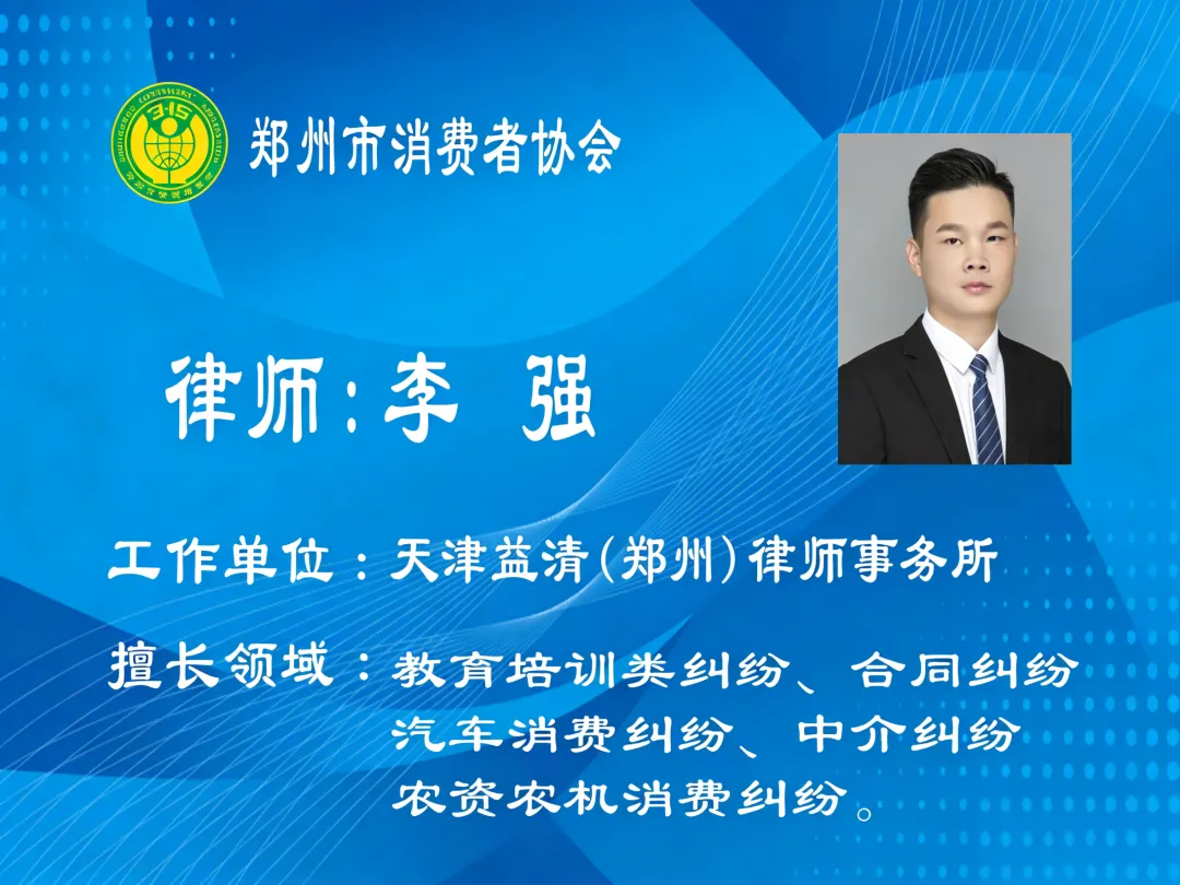 为迎接即将到来的“3·15”国际消费者权益保护日,做好期间的消费维权工作,郑州市消费者协会将在今年“3·15”期间开展消协律师志愿者轮值法律咨询公益活动,律师志愿者将发挥法律服务的专业优势,竭尽所能为消费者提供贴心的、放心的、专业的消费法律咨询服务,欢迎广大市民朋友前来现场咨询,也可通过电话进行咨询。