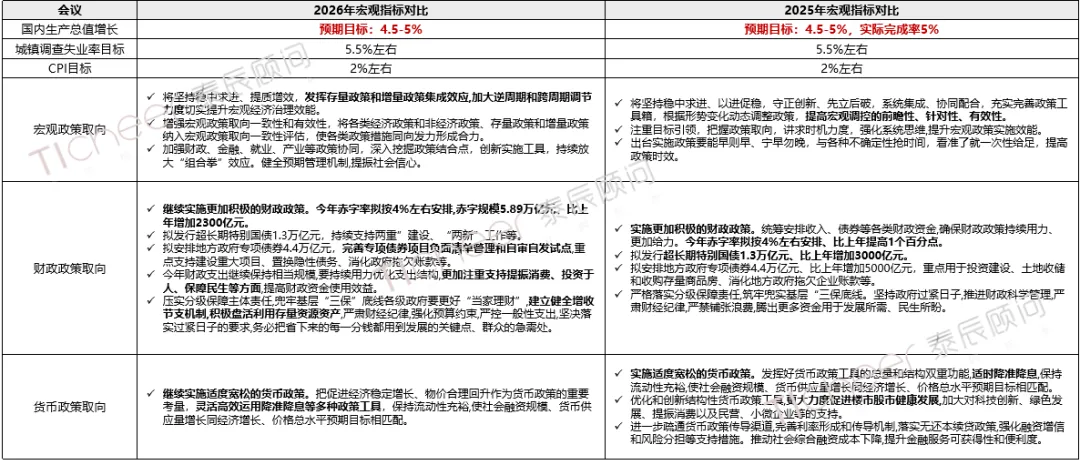 2026年是“十五五”开局之年,本次政府工作报告综合考量为调结构、防风险、促改革留出空间,为后期更好发展打牢基础,将GDP增长目标设定在4.5%-5%,并强调在实际工作中努力争取更好结果,目标制定更加务实