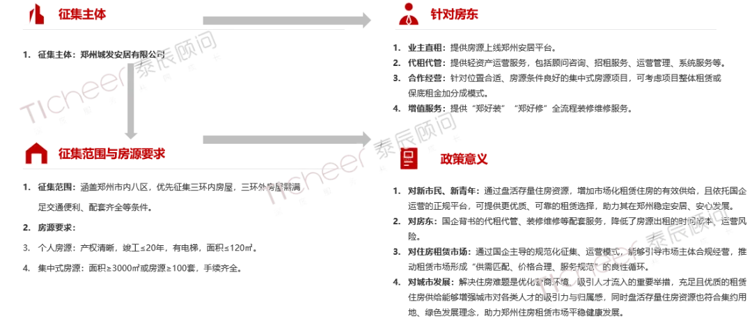 2026年3月4日,郑州城发安居有限公司发布《郑州市市场化租赁住房房源征集公告》,拟面向市内八区公开征集闲置房源,提供代租代管等相关服务,以盘活利用群众富余住房及市场化存量房房源