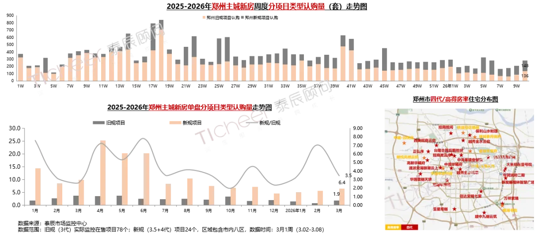3月1周新规项目认购148套,环比+19%;旧规项目认购136套,环比+56%;旧规项目促销发力,成交回升显著