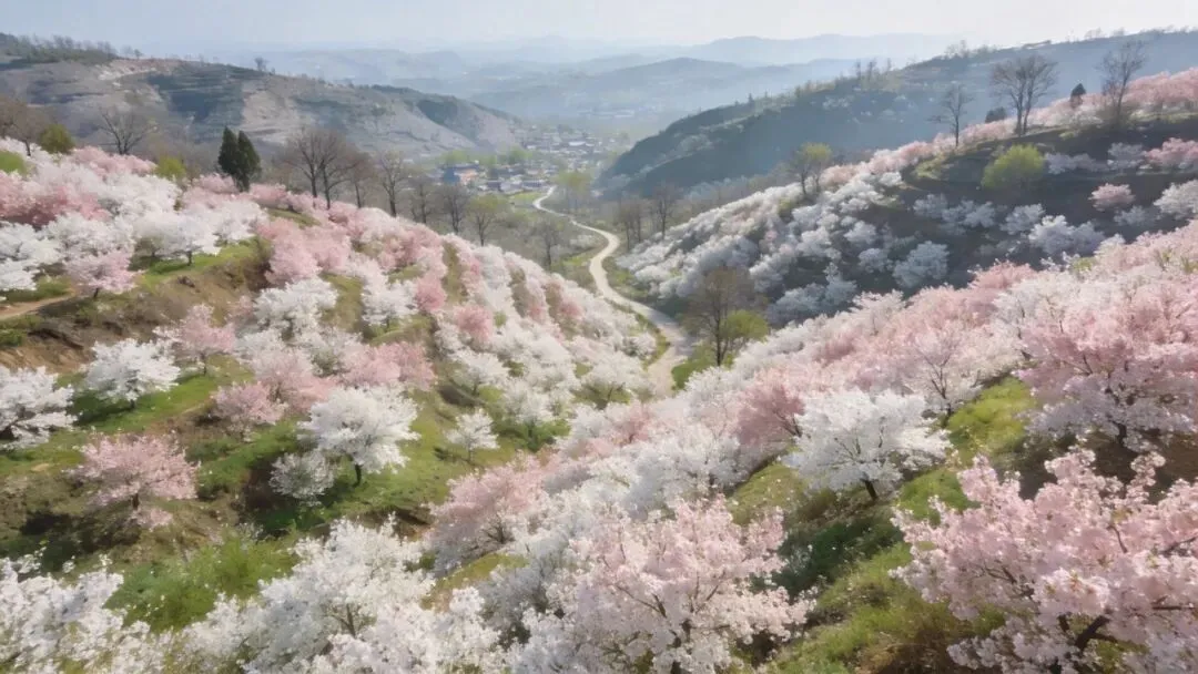 这里在郑州的西南边,种了将近一万亩樱桃,一直被称为“中原樱桃之乡”。整个地方沟谷多,花开的时候一片连着一片,是郑州春天看花的好地方。