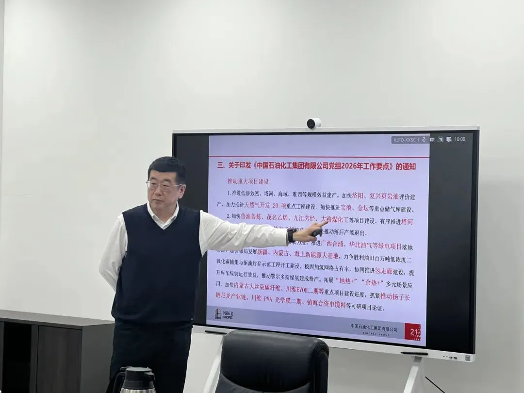 计立明围绕“二次创业推进高质量发展,持续提升服务质量”作主题宣讲,深入传达“二次创业、奋斗有我”形势任务教育工作要求,并结合集团公司及总站、公司年度工作会议精神,对下一阶段重点工作进行动员部署。宣讲中,计立明系统解读了《中国石化2026年度质量工作要点》、《总站、公司主营业务质量提升年专项行动方案》以及《2026年提质增效攻坚战及三年滚动方案(2026-2028年)》等文件精神。他结合郑州招标分公司的实际情况,详细分析了当前各项生产经营指标的完成情况,深入剖析了发展面临的机遇与挑战,并就如何在新形势下找准定位、提升核心竞争力提出明确要求。
