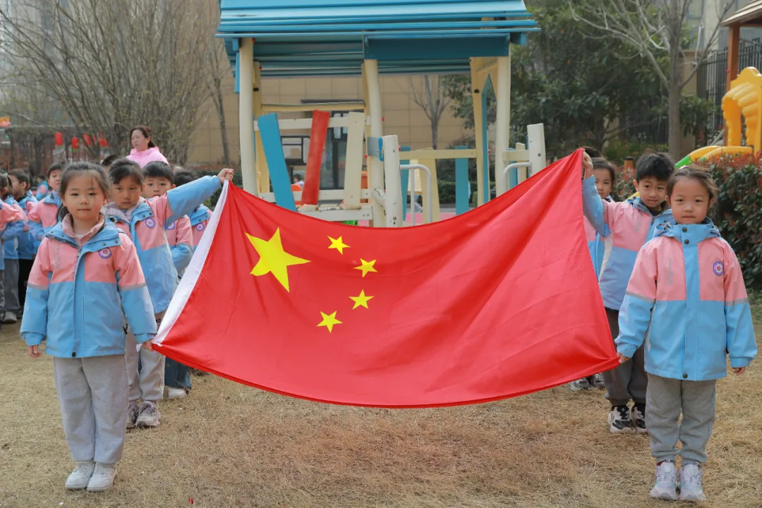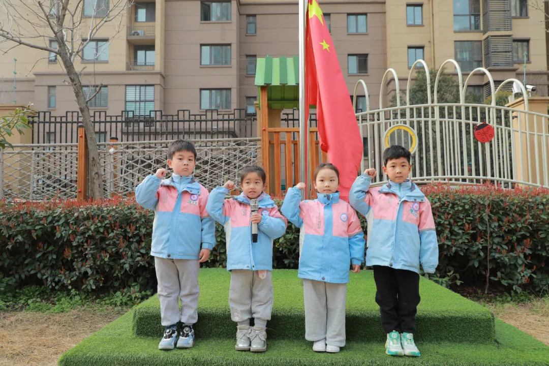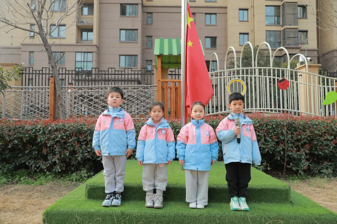 现在我宣布:郑州高新区怡亩花田幼儿园升旗仪式正式开始,请全体师生立正,小旗手们准备。