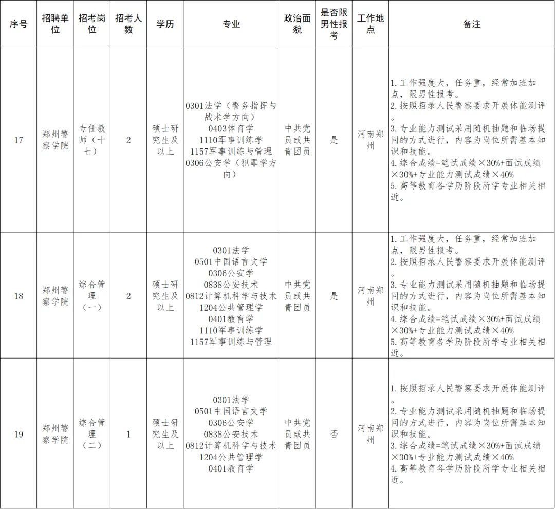 郑州警察学院招聘马上截止了