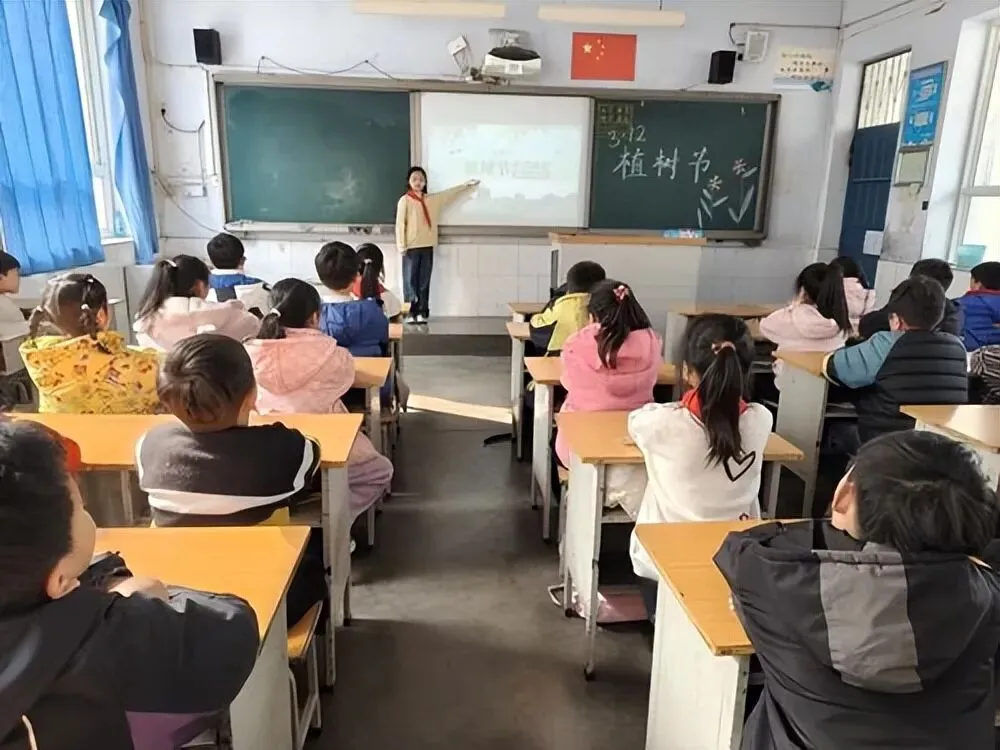 升旗仪式结束后,各班级有序开展主题班会活动,让绿色环保理念进一步深入童心。班会现场形式多样、内容丰富,班主任们借助精心制作的PPT、环保短视频、趣味动画等素材,图文并茂地向同学们介绍了植物对生态环境的重要性、植树节的由来以及当前生态环境面临的挑战,从净化空气、调节气候到保持水土,让同学们深刻认识到绿色家园与人类生存的密切关联。