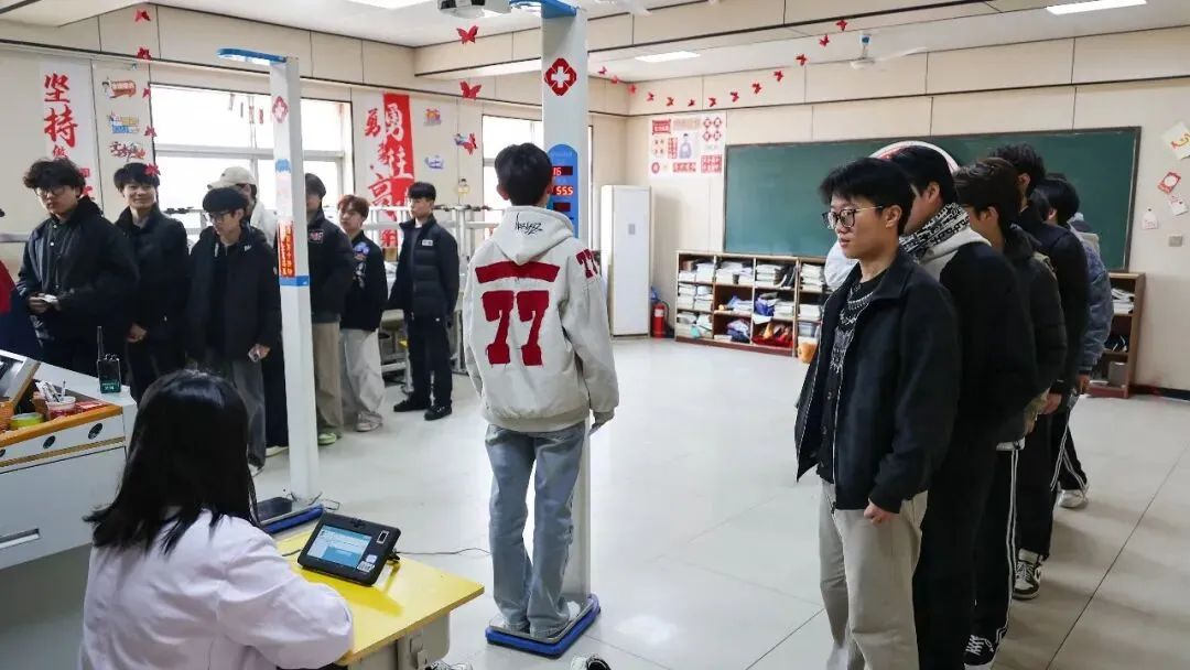 为减少考生往返奔波,保障备考时间,按照“送检入校、服务考生”的原则,我校与惠济区招生办公室紧密协作,将高考体检站“搬”进校园,让同学们足不出校即可享受一站式体检服务,用暖心行动为梦想护航。体检过程中,同学们严格遵守纪律,积极配合医生检查,依次完成了身高体重、视力、色觉、听力、血压、内科、外科及胸透等项目的检查。医务人员严格按照高考体检标准和要求进行操作,认真细致地为每一位学生进行检查,并如实记录检查结果,确保体检数据的准确性。整个体检现场秩序井然,流程规范顺畅。